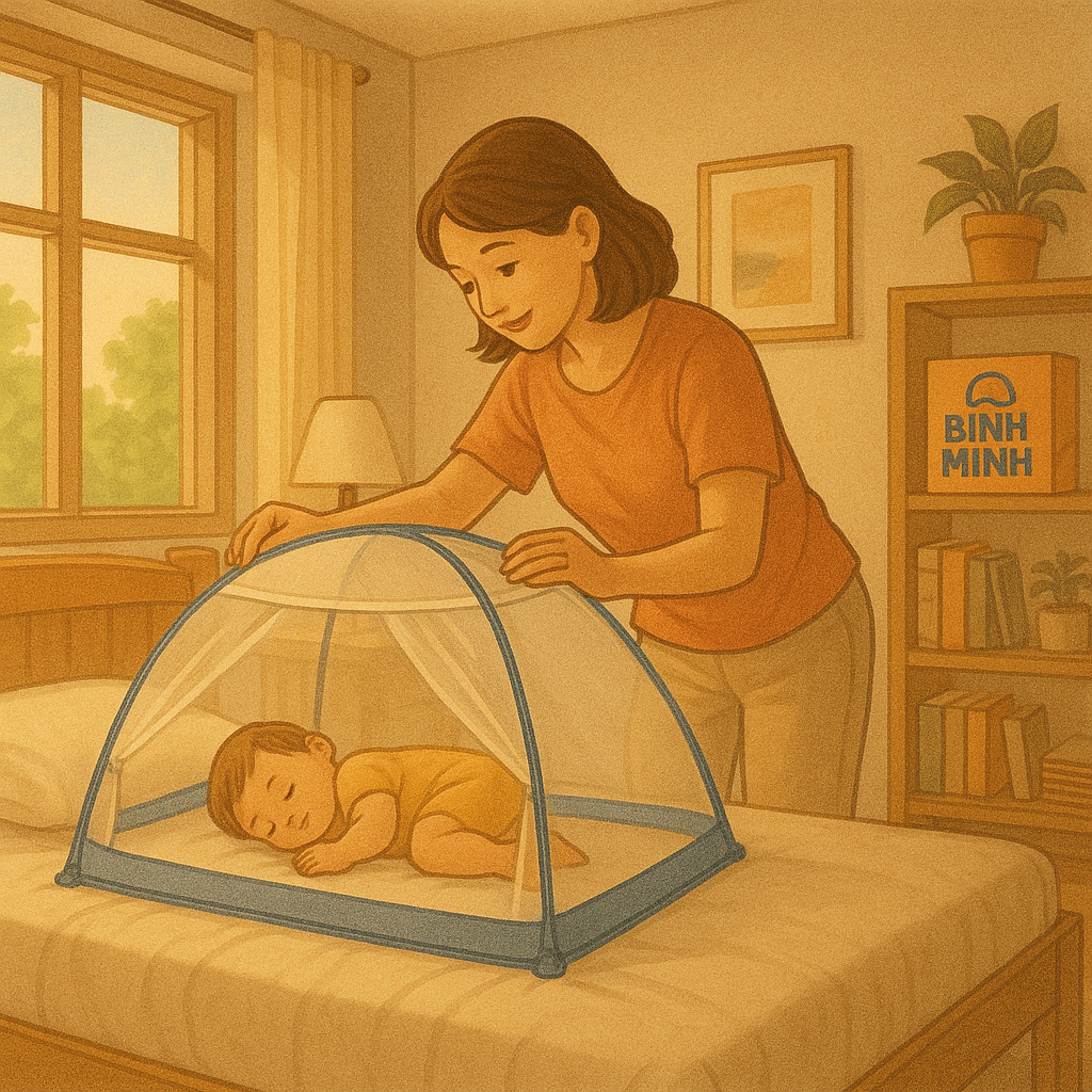 Chính từ những đêm dài mất ngủ, một người con trong gia đình ấy đã lớn lên với mong muốn đơn giản: làm sao để không ai phải trải qua những đêm như thế nữa. Một chiếc màn tiện lợi, che kín, dễ bung – không cần khung mắc cồng kềnh, không cần buộc dây phức tạp – là thứ đầu tiên được nghĩ đến. Từ đó, màn chụp tự bung BÌNH MINH ra đời: như một lời cam kết bảo vệ giấc ngủ cho mọi gia đình, đặc biệt là trẻ nhỏ và người già – những người dễ bị muỗi làm phiền nhất.